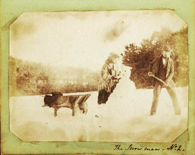 , was one of a circle of early photographers living in Swansea involved in pioneering the scientific development of photographic processes. However, this album, which contains 42 salt and one albumen prints taken during the 1840s and early 1850s, demonstrates the early use of photography as an art form. Instead of the stiff formal portraits associated with this period, there is an intimate spontaneity in the photographs of individuals and groups. The album also contains two photographs of a snowman being built at the family home in Penlle'r-gaer (perhaps the first photographs of a snowman ever taken) and of chickens and pigeons. In addition there are seventeen flower studies.