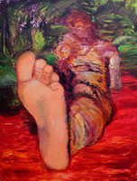 "Colour always predominates. At times the colours are quite tonal and on other occasions I yeard for clean, clear surfaces, somewhat minimal in appearance. Where the foot is concerned, I demand a presence. So many artists are afraid of the foot and the hands. I thrust the foot in the viewers' faces. They are grossly oversized but sensitively painted."